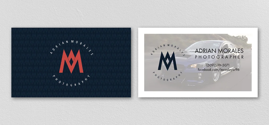 Adrian Morales photography came to me with a request to help him design a logo as well as business cards for his photography business. Adrian is originally from the pacific northwest so that helped me put together is initial logo. Combined with his love for car photography I was able to place one of his shots on the back of his business cards to let his customers know what he is primarily into.
