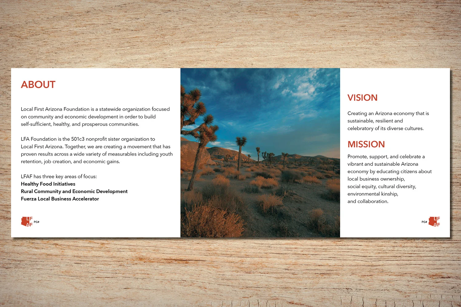 Local First Arizona Foundation is a non-profit group based out of Phoenix, AZ. The organization deals with local businesses within the Arizona community helping them with customer outreach and support. These are a few pieces that I was tasked with in helping design their branding & communication pieces.