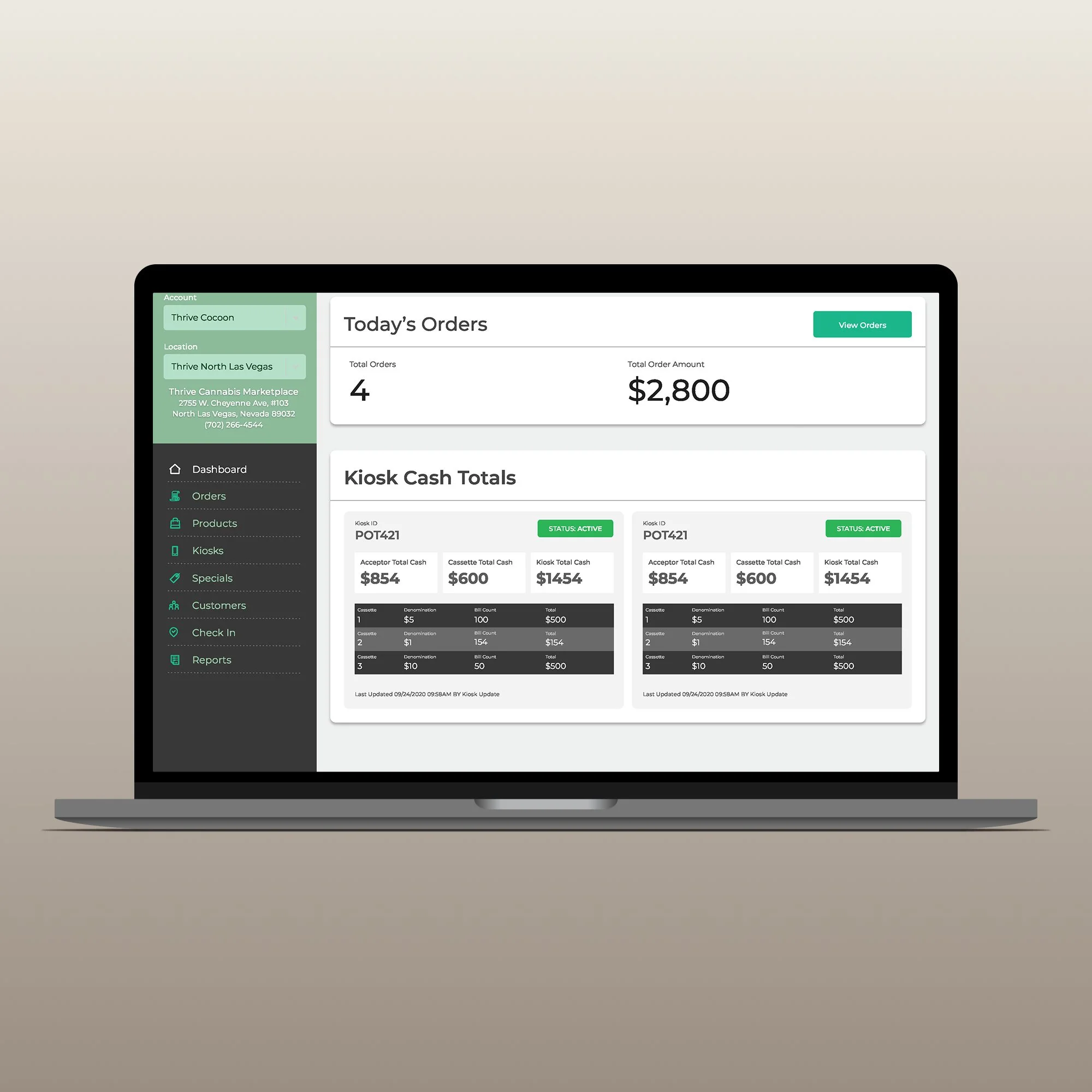 Creating a central command system for dispensary kiosk operations